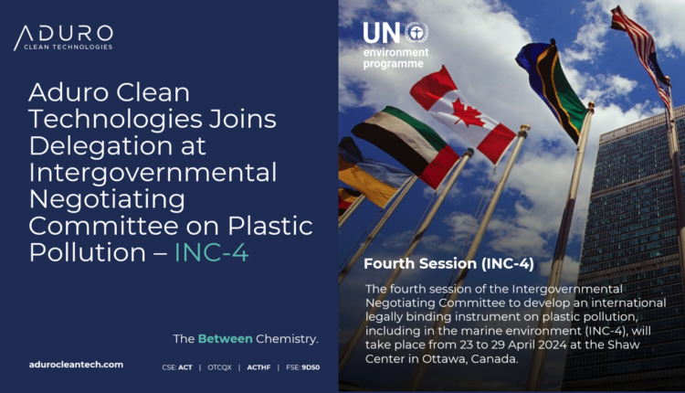 Aduro Clean Technologies Inc. (“Aduro” or the “Company”) a Canadian technology company using the power of chemistry to transform lower value feedstocks, like waste plastics, heavy bitumen, and renewable oils, into resources for the 21st century, is joining a delegation of observers from civil society, environmental groups, academics and business at the fourth meeting of the Intergovernmental Negotiating Committee on Plastic Pollution (INC-4) in Ottawa, Ontario, Canada from April 23rd to 29th, 2024.