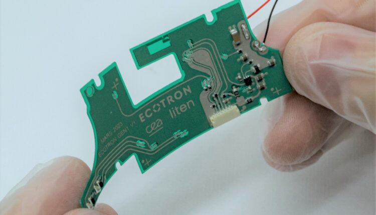 The CEA research institute in France, in collaboration with its industry partner, contributes a medical device use case with a flexible printed circuit board (PCB) within the EU-funded project ECOTRON. The first generation of the use case (GEN1) demonstrates that a conventional PCB can be replaced with a flexible printed one to create more sustainable healthcare and wearable devices with no compromise on performance. The flexible printed circuit board is produced in an additive manufacturing process that uses less energy and chemicals. The future use case generations will include dismantling technologies (GEN2) and bio-based/recycled materials for substrates and inks (GEN3) developed in the project.