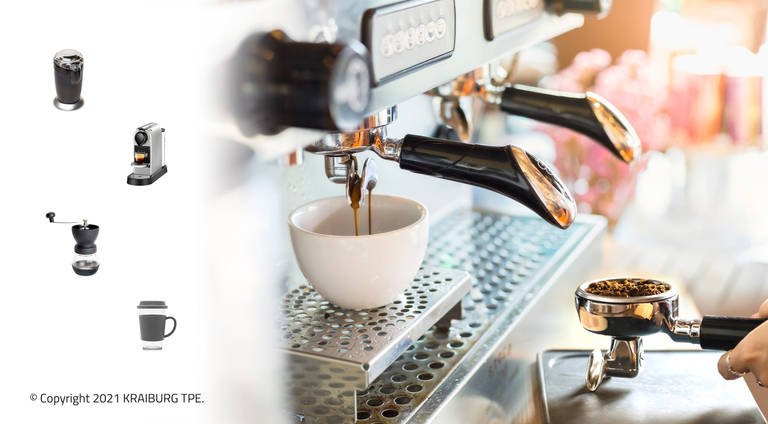 KRAIBURG TPE, a global TPE manufacturer of a wide range of thermoplastic elastomer products and custom solutions for multiple industries, offers the THERMOLAST® K FC/AD/PA nd FC/CS series of compounds for applications in coffee making equipment.