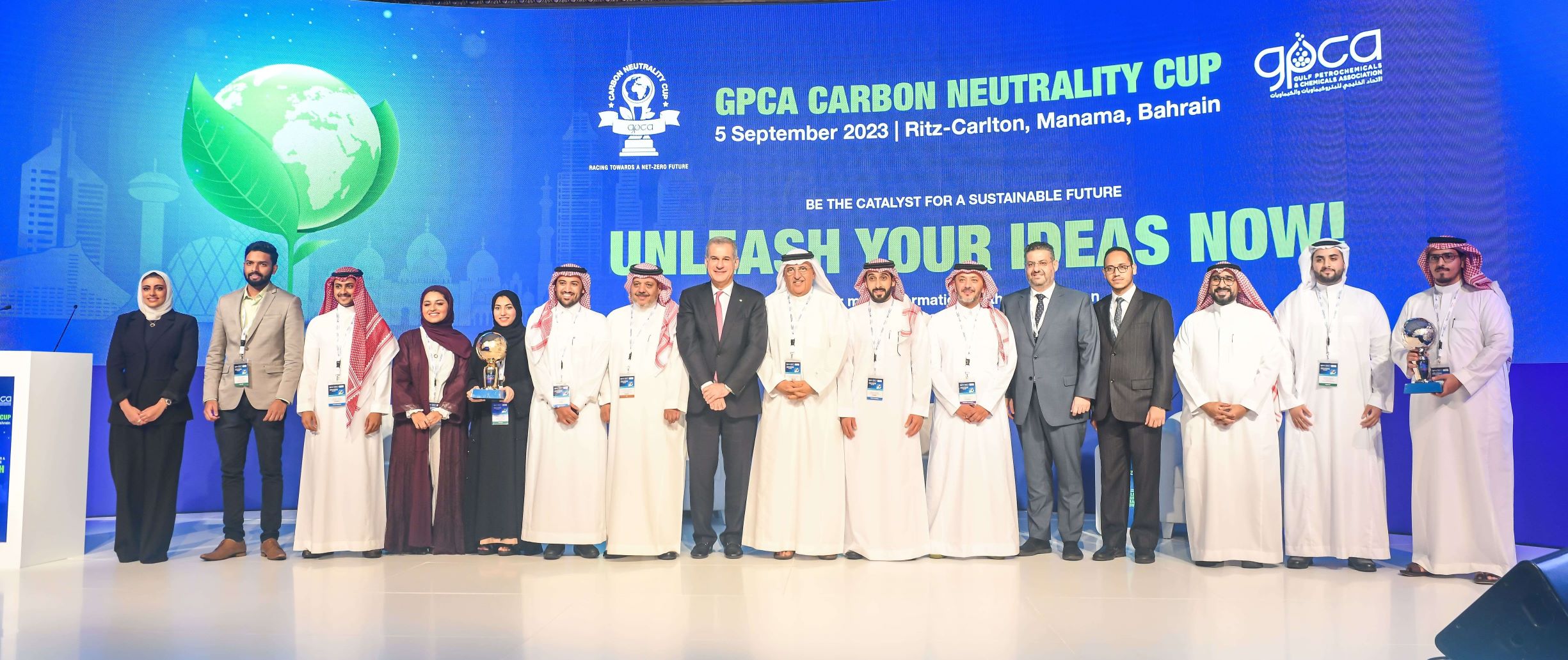 The Gulf Petrochemicals and Chemicals Association (GPCA), the voice of the chemical industry in the Arabian Gulf, announced today the winners of the inaugural GPCA Carbon Neutrality Cup, whose ground-breaking ideas were recognized in a special award ceremony during the gala dinner of the 5th GPCA Responsible Care Conference held in the Ritz-Carlton, Manama, Bahrain on 6 September 2023.