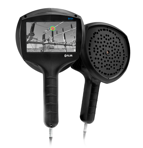 The FLIR Si124 acoustic imaging camera can help you locate pressurized leaks in compressed air systems or detect partial discharge from high-voltage electrical systems. This lightweight, one-handed solution can be used to identify issues up to 10 times faster than with traditional methods. Built with 124 microphones, the Si124 produces a precise acoustic image that visually displays ultrasonic information, even in loud industrial environments.