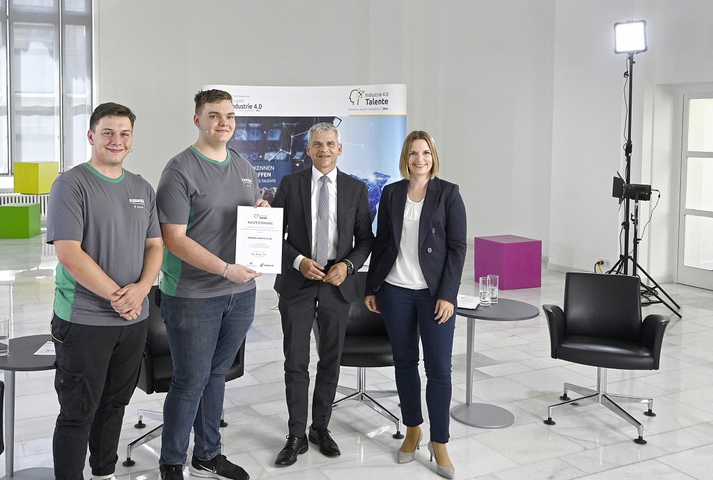 Now it is official: with its trainee project “Smart Bratwurst”, Arburg was one of the five winners of the “Industry 4.0 Talents” competition this year. The award was presented to the trainees Nico Schoch and Nils Frey by Dr Patrick Rapp, State Secretary in the Ministry of Economics, Labour and Tourism of the State of Baden-Württemberg, at a virtual awards ceremony. The two trainees travelled to Stuttgart on behalf of the Arburg team to receive the award and present the project in the Haus der Wirtschaft…..