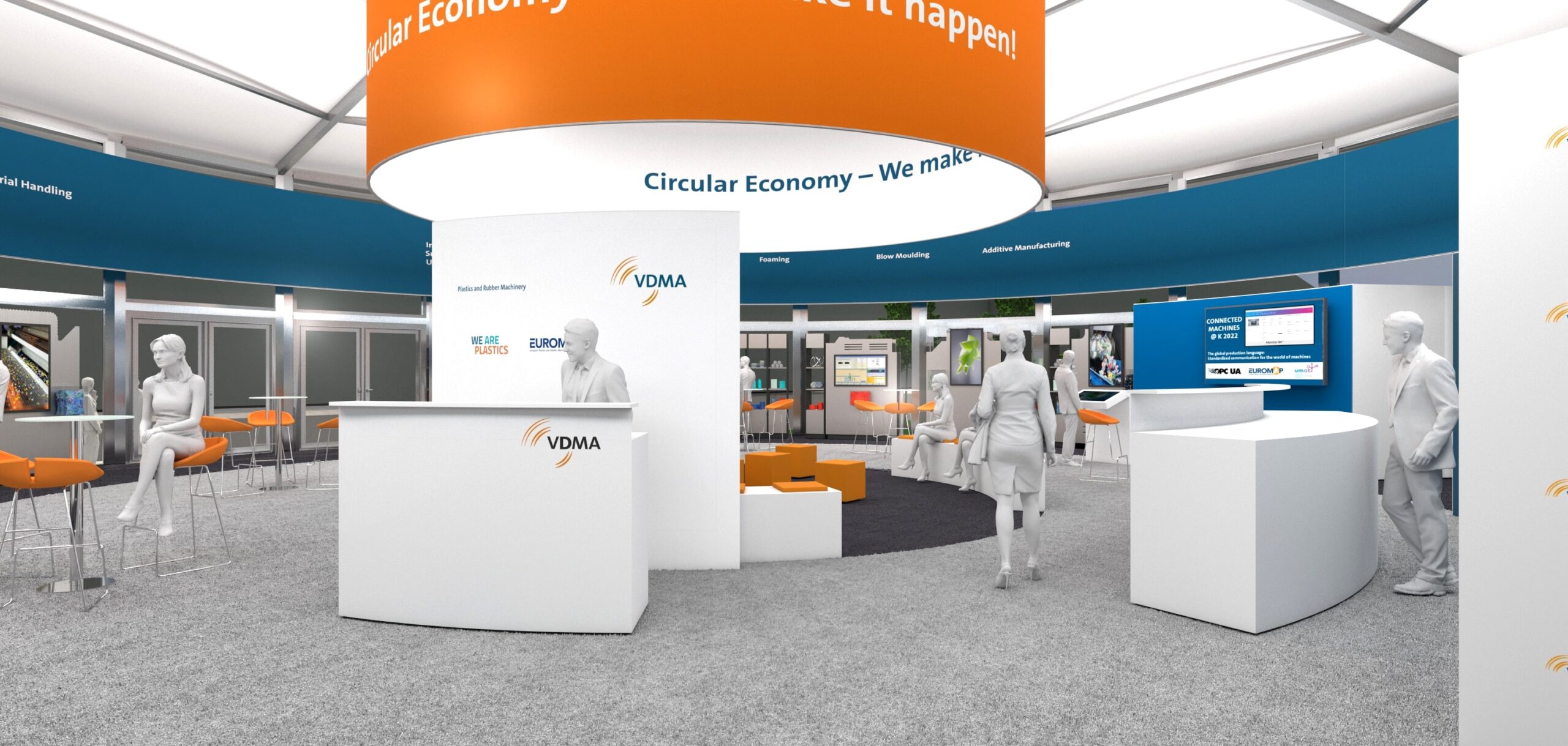 The Circular Economy Forum picks up on all three guiding topics of K 2022 – Circular Economy – Climate Protection – Digitalisation. Because high tech is also required to optimise manufacturing processes and make them ever more efficient – as another measure besides the recycling of plastic products to save CO2. Both approaches are not conceivable without digitalisation. It is, for instance, the enabler for digital product passports and globally applicable traceability standards. The linking of all components in the production line is considered the prerequisite for optimising processes. On the topic of data exchange between machines the VDMA has initiated a showcase that makes the live data of integrated machines visible on the basis of OPC UA, at the VDMA Dome and also retrievable by smartphone.