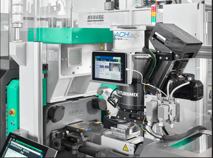 The energy- and production-efficient injection moulding of solid silicone (HCR) will be demonstrated by an electric Allrounder 570 A with a clamping force of 2,000 kN and a size 400 injection unit. The material processed will be Elastosil R plus 4001/70 from Wacker Chemie. Dosing system ACH Turnmix, now available in M and L versions along with the proven S size, provides constant and bubble-free feed at continuous pressure. This enables this production of silicone parts ranging from small to large shot volumes. The exhibit will be equipped with the new M size, which is particularly suitable for medium-sized injection units and HCR with a wide range of Shore hardnesses. The cavities of the 4-cavity mould will be injected directly via a cold runner system. This prevents burr formation and avoids the need for finishing work on the injection moulded parts. Four bottle openers at a time will be produced in a cycle time of around 60 seconds. As part of the silicone equipment package, the injection unit features a special screw geometry, cylinder temperature control and nozzle technology. The equipment, which is precisely adapted to the processing of solid silicones, transforms the Allrounder in conjunction with the ACH Turnmis into a compact and cost-effective injection moulding solution.