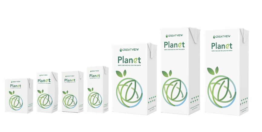 The bio-attributed polymer used in Greatview Planet has the same material property as conventional polymer and thus guarantees the same high quality and food safety of the Greatview Planet carton packs. Alongside the value drivers “Sustainability, Quality & Food Safety”, Greatview Planet is a “Plug & Play Solution” – ready to run on the customer’s filling line without any downtime or additional waste in case of a switch from standard Greatview packaging material to Greatview Planet. Maintaining high line efficiency and causing zero additional waste are further sustainability benefits while also ensuring low filling costs and attractive total cost of ownership (TCO) of the whole carton filling system.