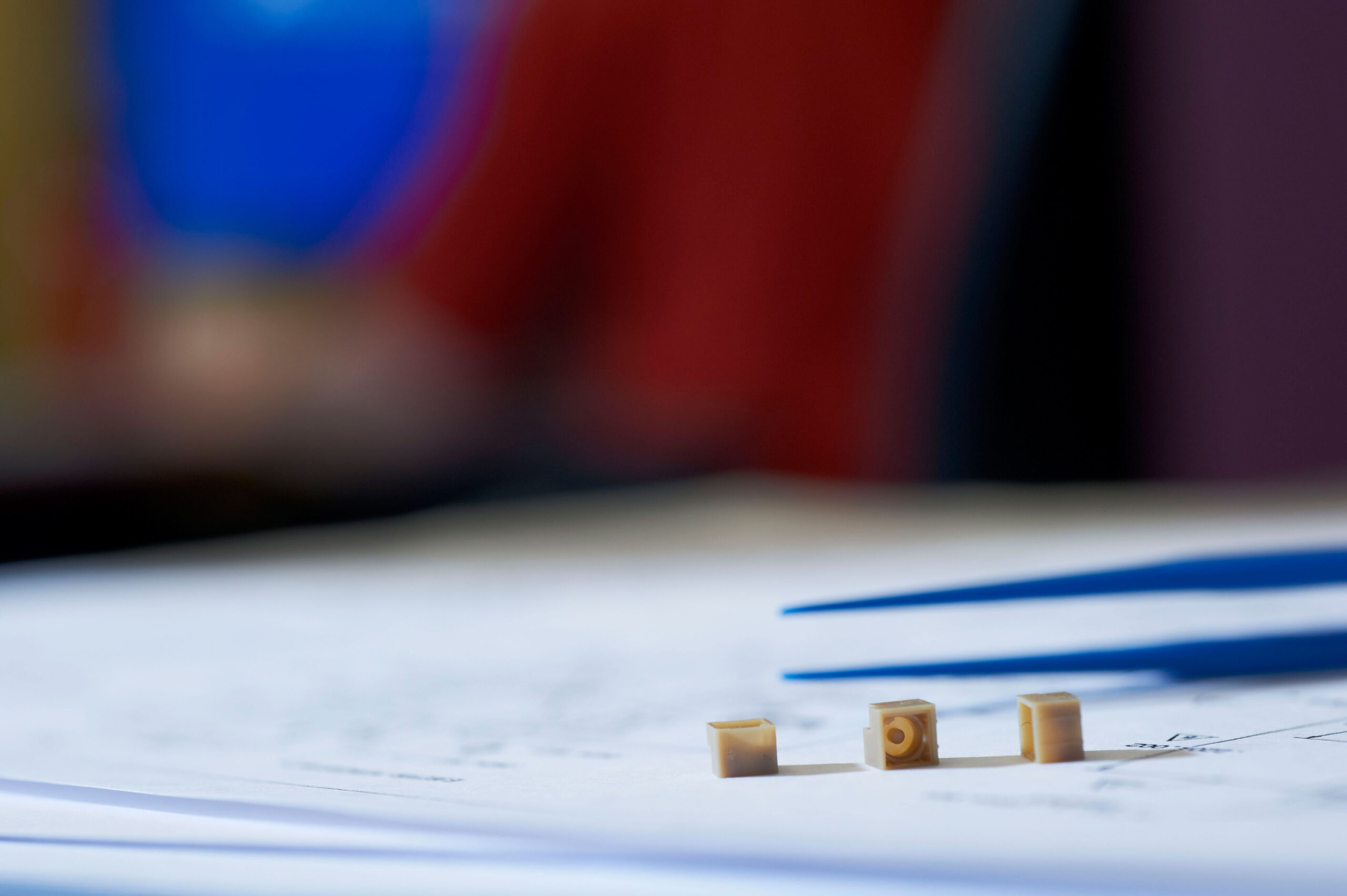 - Small parts around 800µm (0.031”) x 300µm (0.012”) x 380µm (0.015”).