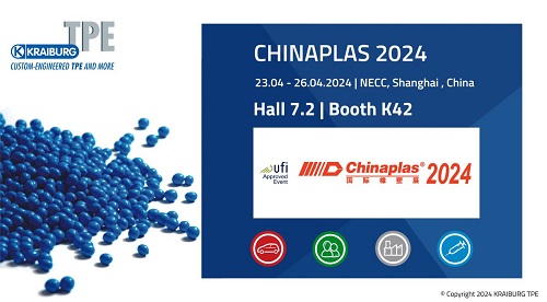 KRAIBURG TPE, the global thermoplastic elastomer (TPE) manufacturer is excited to announce its participation in CHINAPLAS 2024, chinaplas which takes place in NECC Shanghai, China, from April 23 to April 26 2024 to highlight its latest TPE solutions suitable for diverse industries.