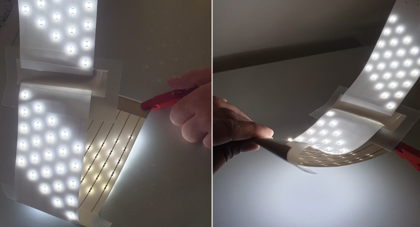 The cooperation of TracXon and Lohmann, based in the Netherlands and Germany, takes part in the competition with a tiled lighting and signage solution. A new customizable tiled lighting and signage device offers an easy-to-install, lightweight, and transportable solution for large areas. Designed for versatility, the device can wrap around curved surfaces like pillars, enabling smart surface applications for expositions, concerts, and other events. The demonstrator uses hybrid printed electronics to overcome the limitations of traditional PCB technology. This innovative solution uses a fully additive process, ensuring greater sustainability while enabling robust, flexible, and foldable interconnects to seamlessly connect components.