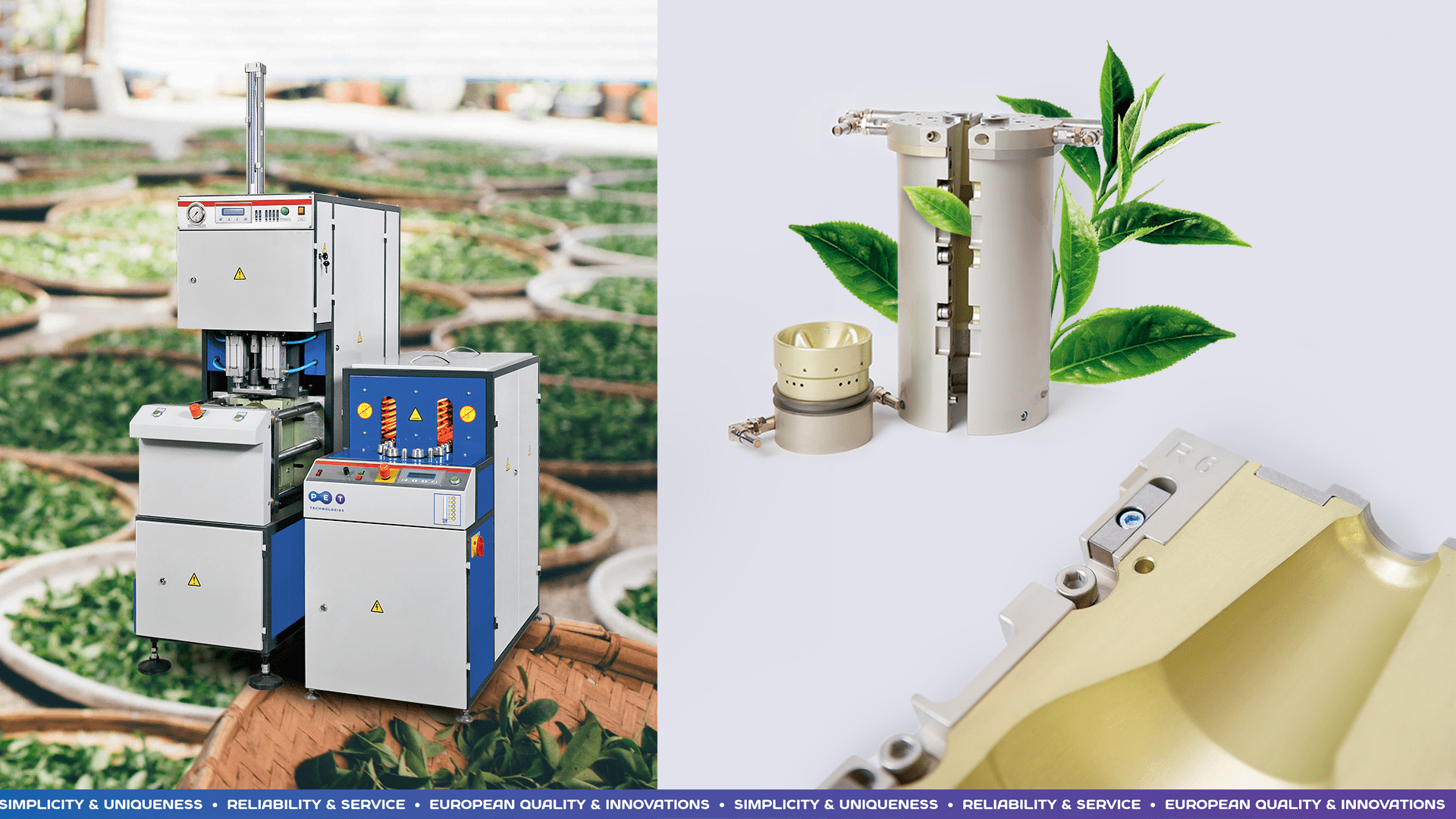• The machine is adapted for  rotary blow molds  of all European brands;