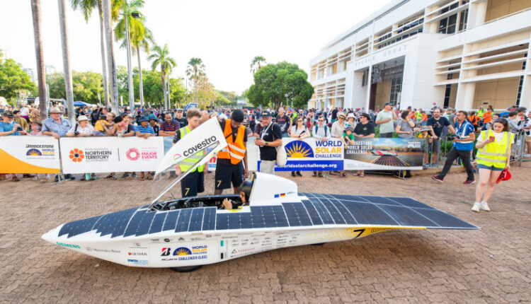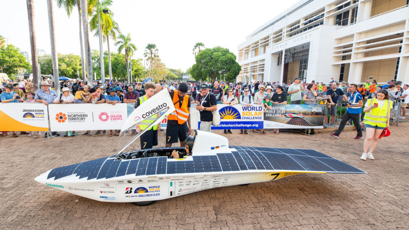 For the third time in a row, Team Sonnenwagen took on the challenge of participating in the world’s toughest solar car race across the Australian outback – the Bridgestone World Solar Challenge. From October 22 to 29, the students from RWTH Aachen University and Aachen University of Applied Sciences did well with their self-developed vehicle “Covestro Adelie”: Despite challenging climatic conditions, they were able to maintain an average speed of around 80 kilometers per hour on the more than 3,000-kilometer route from Darwin to Adelaide. In a strong competitive environment, they positioned themselves among the top five cars, but in the harshness of the race, an accident finally occurred, which fortunately was mild, but forced the team to abandon the race.